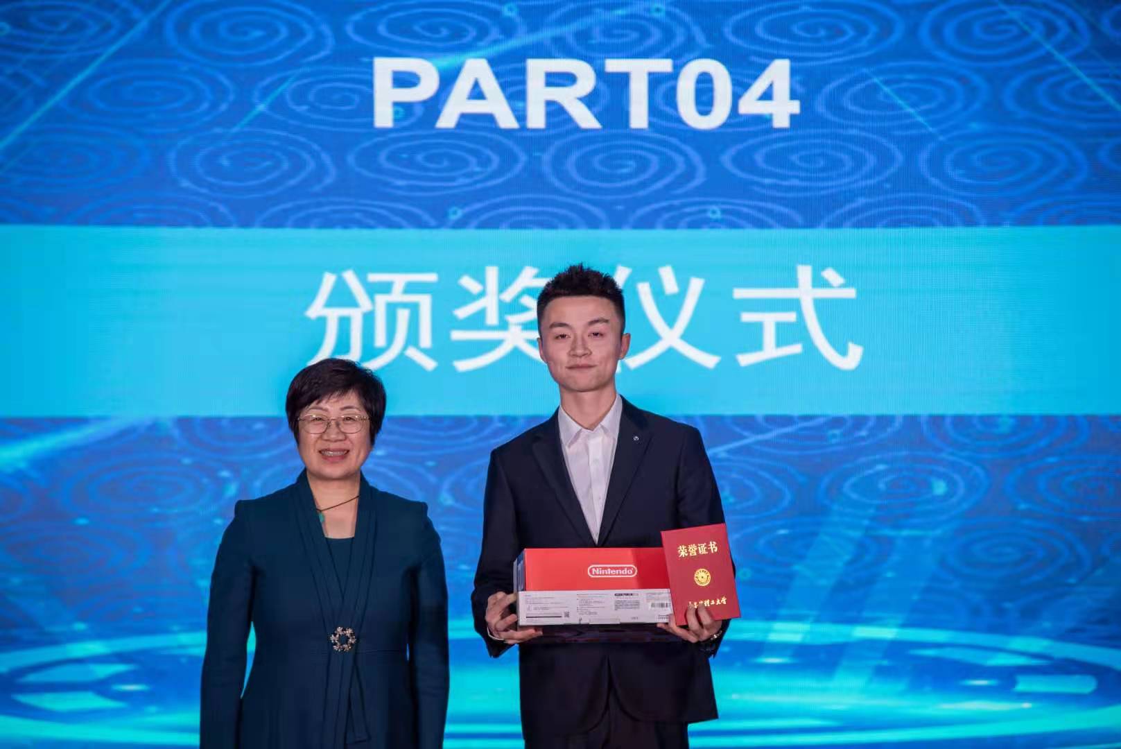 党委学生工作部部长刘迪、艺术学院党委书记王鹏为获得二等奖的选手颁奖