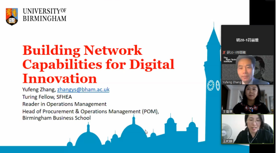 为促进我校师生了解数字化创新研究前沿,加强学术交流,2021年9月16日下午,经济与管理学院邀请英国伯明翰大学张玉峰教授作了题为“数字化创新的网络能力构建(Building Network Capabilities for Digital Innovation)”的学术报告。报告通过Zoom会议线上举行,经济与管理学院副院长王莉静,学院200余名中青年骨干教师、硕博研究生参加了此次学术报告,会议由王雪原教授主持。