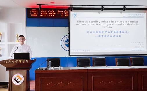 为进一步提升研究生的培养质量和科研能力,加强学院学术交流,营造良好的学术氛围,助力一流学科建设与发展,10月6日下午,由学院组织的研究生讲坛在1号楼740会议室召开。本次研究生讲坛邀请了学院管理科学与工程专业博士研究生、爱丁堡大学访问博士研究生赵天一作为主讲人,作了题为“创业生态系统中的有效政策组合:一项中国的组态分析(Effective Policy Mixes in Entrepreneurial Ecosystems:A Configurational Analysis in China)”的学术报告。