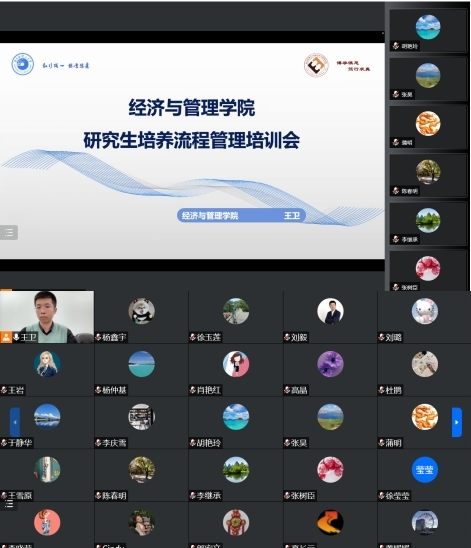 11月17日下午,经济与管理学院召开了“研究生培养流程管理培训会”线上会议,学院的博士生指导教师及硕士生指导教师参加了本次培训会。培训会由副院长王卫主持。
