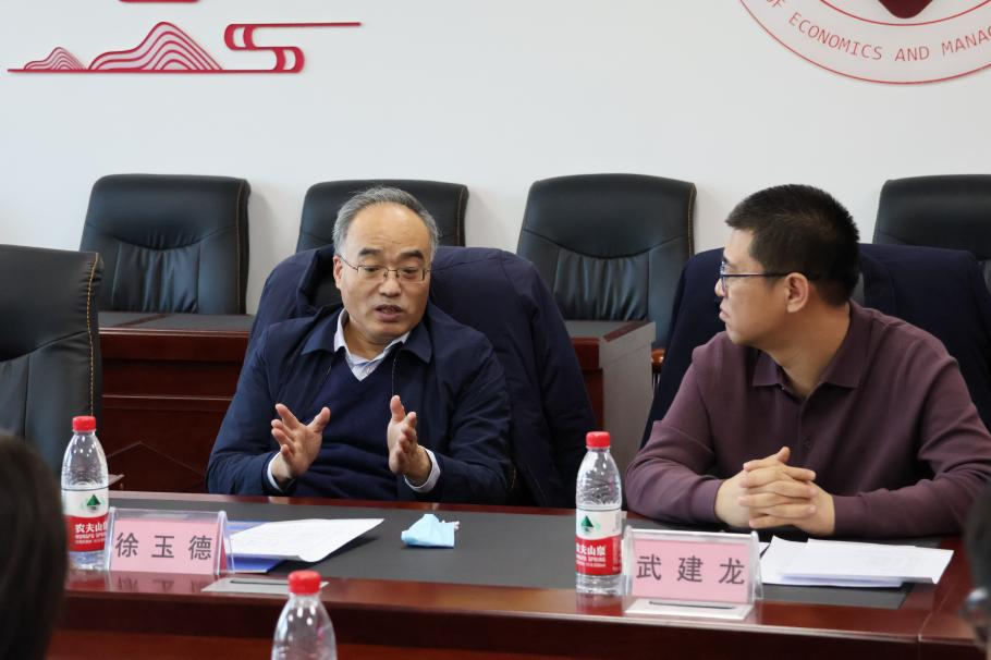 徐玉德副院长就工商管理学学科目前情况,重点地了解了研究生招生、毕业等方面的情况,并围绕人才培养、师资队伍、科学研究、学术交流及社会服务等五个方面针对工商管理学学科建设提出了建设性意见和可行性建议。