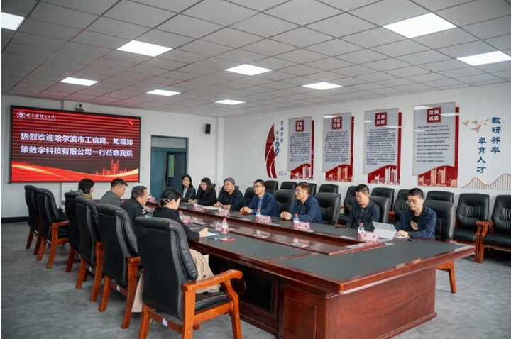 在本次座谈会上,哈尔滨市工信局、知观知策数字科技有限公司相关领导与我院就产学研合作以及服务哈尔滨市产业发展、企业数字化转型等重要议题展开了深入交流与探讨,达成了一致共识。通过双方的交流与合作,相信将为推动哈尔滨市产业转型升级,促进企业数字化、绿色化转型,助力人才培养和科技创新提供解决方案和智力支持。