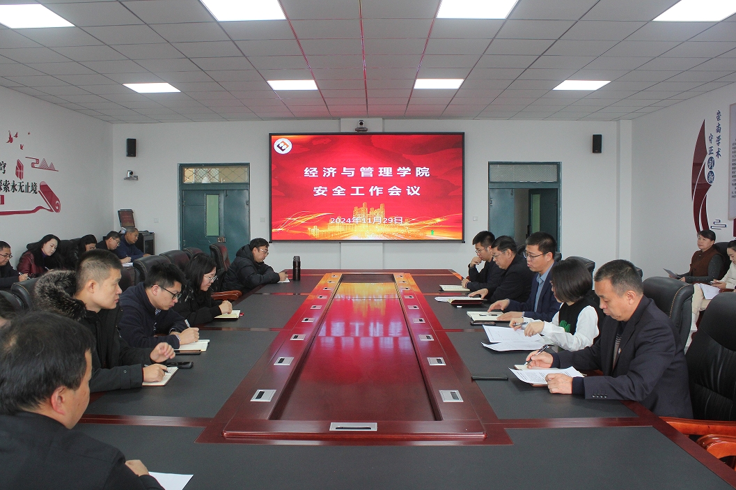 为深入贯彻落实学校2024年度安全工作会议精神,11月29日,经济与管理学院召开了年度安全工作会议,学院领导班子、各系(办、中心)主任和党支部书记、全体学生工作人员和行政管理人员参加了会议,会议由副院长王卫主持。