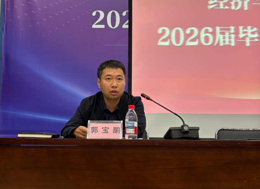 为扎实推进2026届毕业生就业工作,帮助毕业生明确职业发展路径、提升就业核心竞争力,助力毕业生实现高质量充分就业,2025年9月17日晚18时,经济与管理学院在南区图书馆三楼报告厅召开2026届毕业生就业动员会。学院党委书记周长群、党委副书记郭宝鹏、副院长姚峰敏、孙嘉轶,学校大学生就业服务中心金丽欢老师、毕业班辅导员及2026届全体毕业生参加会议,会议由学院党委副书记郭宝鹏主持。
