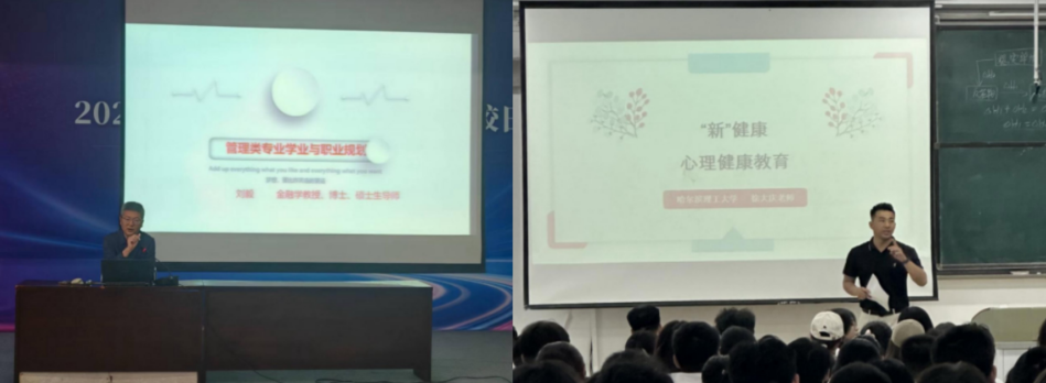 9月12日,学院进一步聚焦新生发展规划和心理适应。学院教师刘毅教授在南区图书馆报告厅开展“职业规划教育”,结合经管类专业特点,通过职业兴趣测评、典型职业路径分析和规划工具使用讲解,引导学生明确发展方向,制定可行行动计划,帮助新生明确职业发展路径,赋能专业成长。赵旋和徐大庆老师分场地开展“新健康·心理健康教育”,围绕大学常见心理适应问题、压力应对策略、积极心态培养和人际交往技巧等内容,通过案例分析和互动练习,帮助学生掌握心理调适方法,增强心理韧性和自我管理能力。