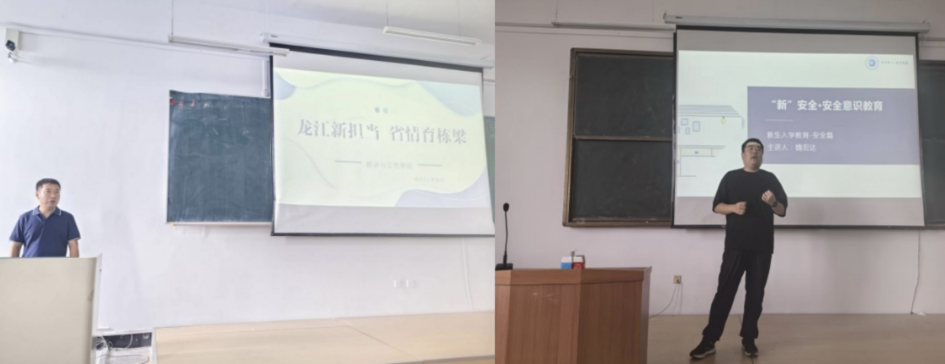 9月14日上午,学院党委副书记郭宝鹏讲授“新担当·龙江省情教育”,全面介绍黑龙江省经济社会发展现状、重大战略机遇和就业创业政策,鼓励学生立足龙江、服务基层,增强家国情怀和使命担当。魏宏达老师围绕“新安全·安全意识教育”,系统讲解网络安全、消防安全、交通安全和防范电信诈骗等内容,通过典型案例分析和应急技能介绍,切实提高新生的安全防范意识和自我保护能力。